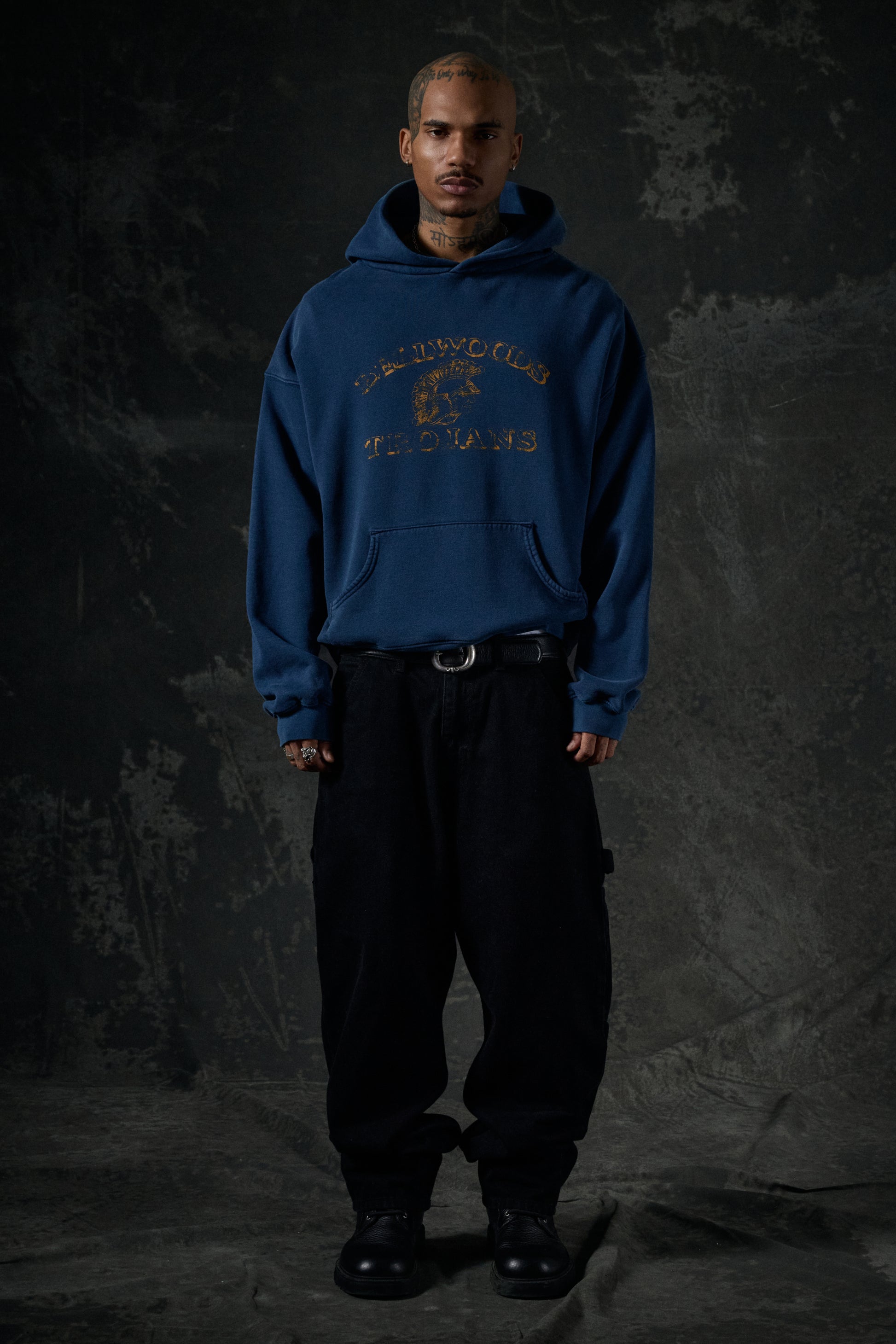 The perfect balance of edge and lived-in comfort. This hoodie is crafted from 450 GSM Cotton Fleece for a structured yet broken-in feel. Designed with a relaxed fit that drapes effortlessly, it’s made for layering or standout solo wear.