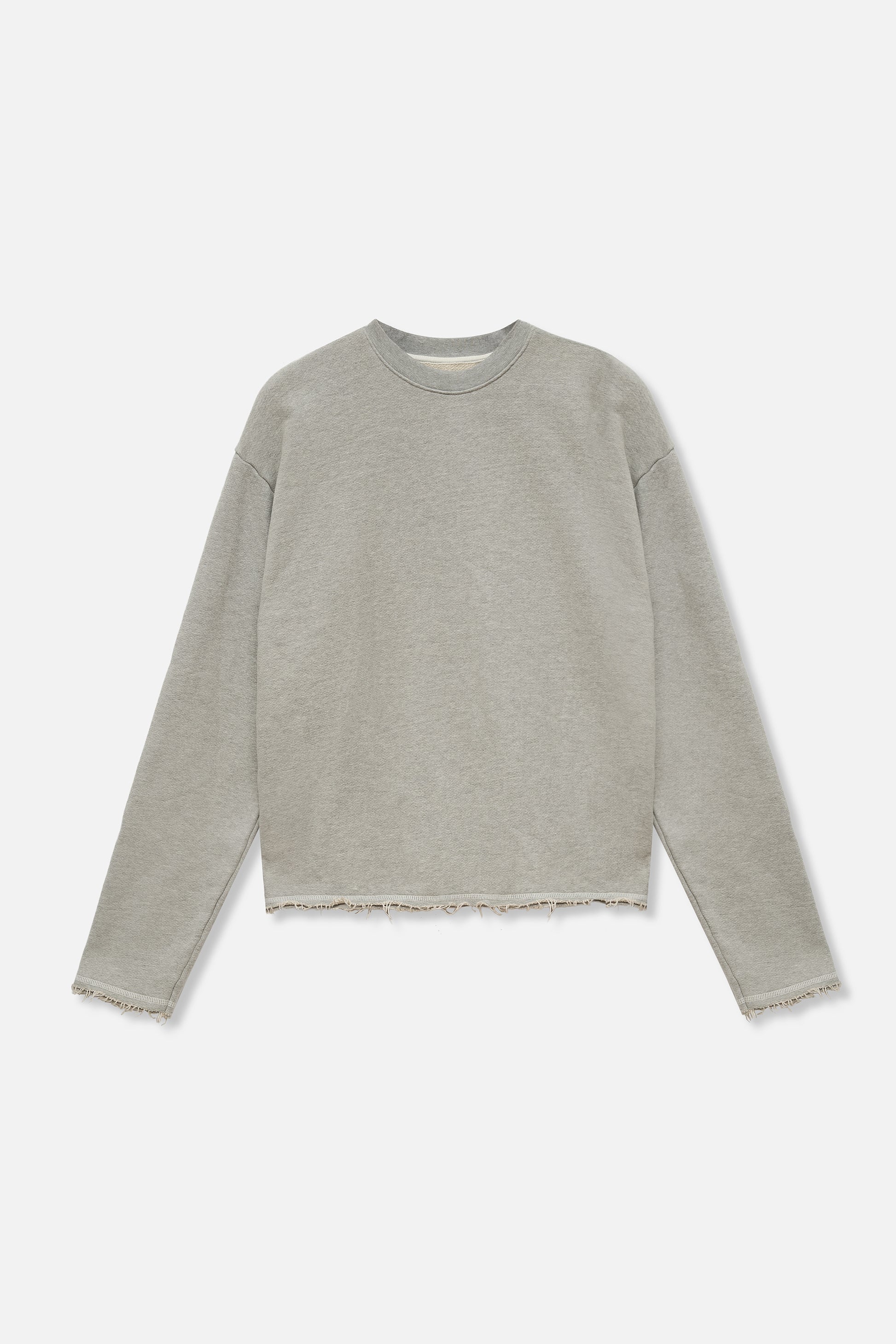 Lightweight, lived-in, and made for long days. This summer-ready crewneck comes in a washed grey finish with subtle distressing at the hemline for a worn-in look.