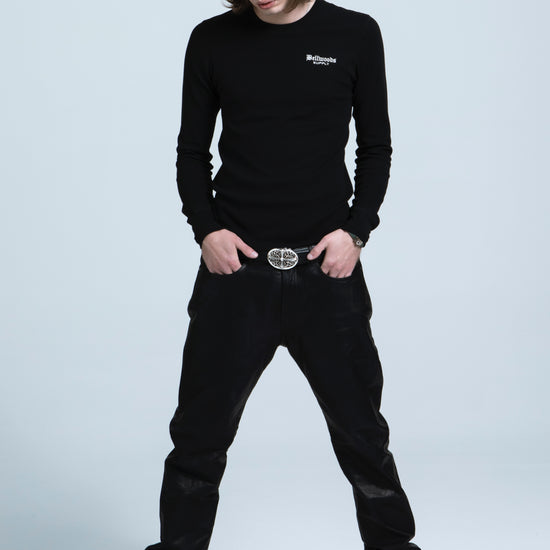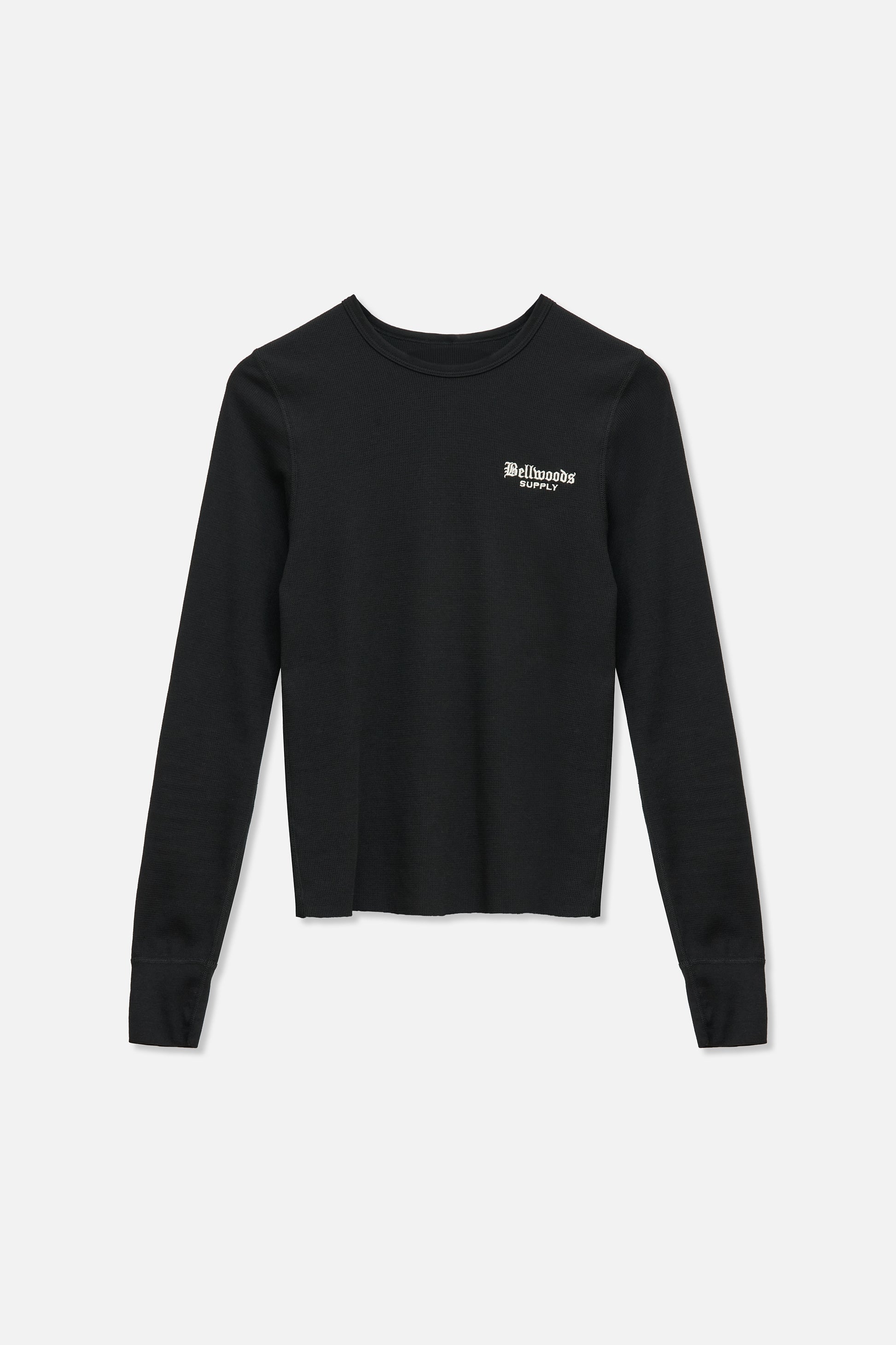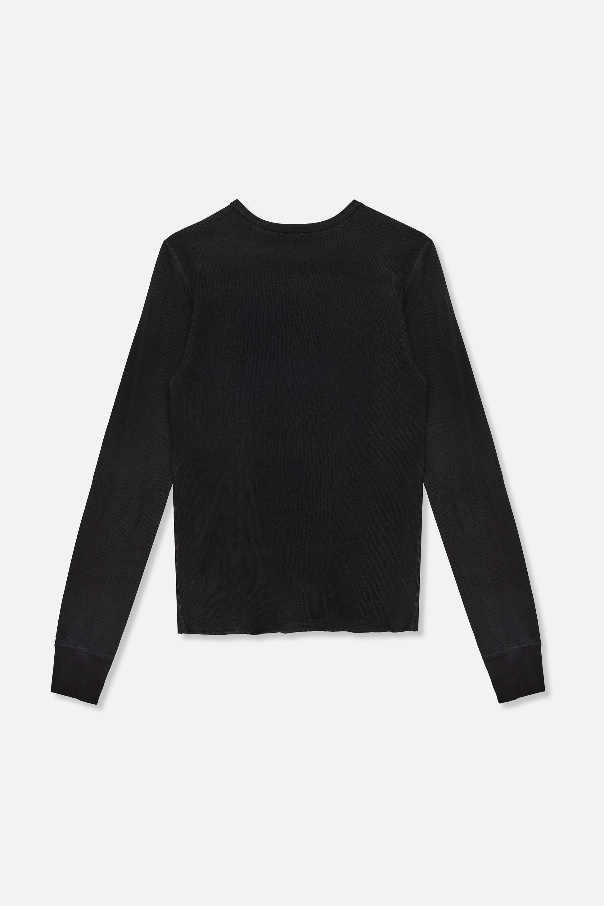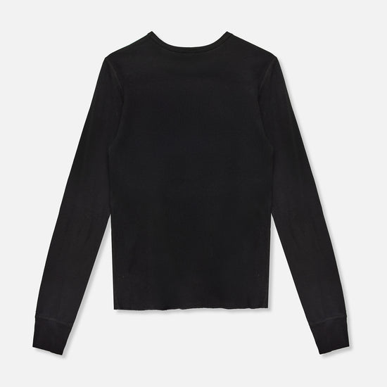 A lightweight long sleeve thermal designed for comfort and versatility. Crafted from a soft, breathable knit, it delivers subtle warmth without added bulk. Finished with a classic thermal texture and a branded screenprint for a refined statement, this piece is built to wear on its own or layered.