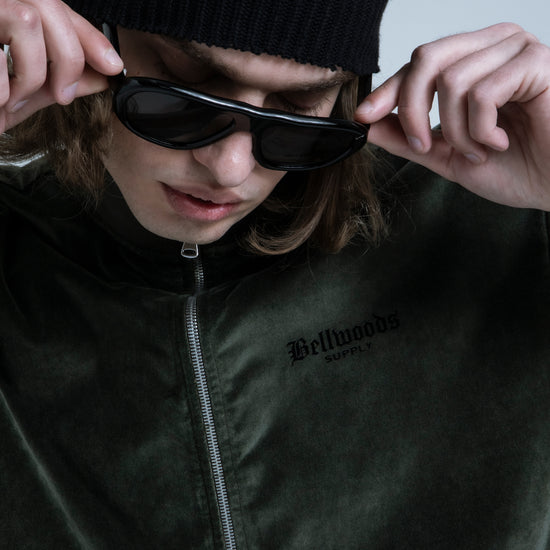 This velour jacket is crafted from soft, plush fabric with a washed finish that gives each piece a naturally worn-in character. Designed with a clean zip-front closure and a structured yet relaxed silhouette, it balances comfort with understated sophistication.