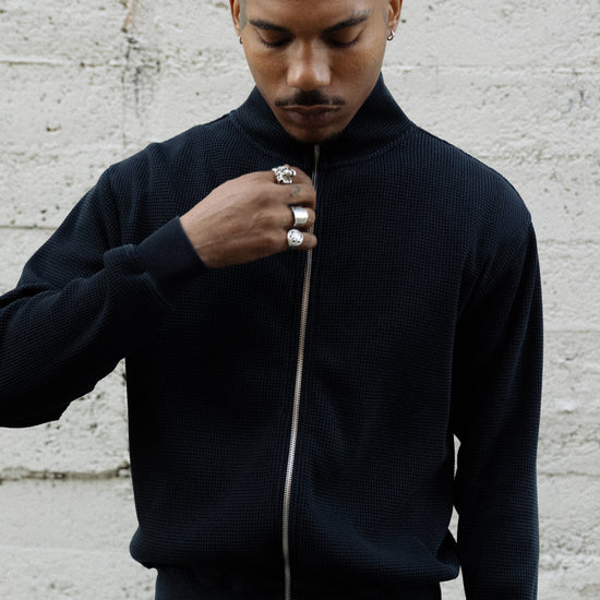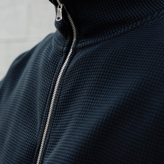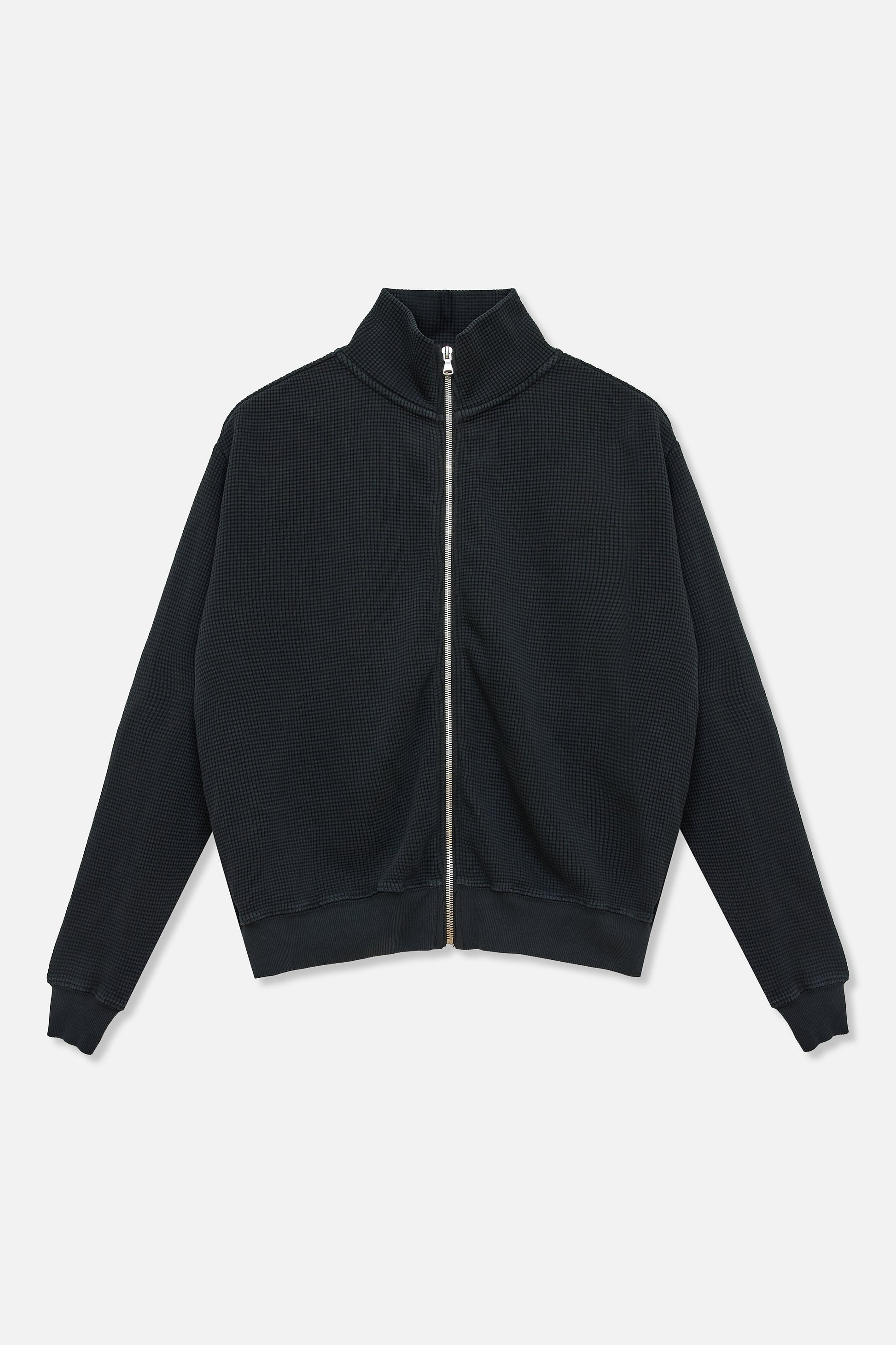 A fresh take on our best-selling waffle sleeveless. The long sleeve waffle zip jacket offers a slim fit with clean, finished sleeves, making it the perfect lightweight layering piece for summer.