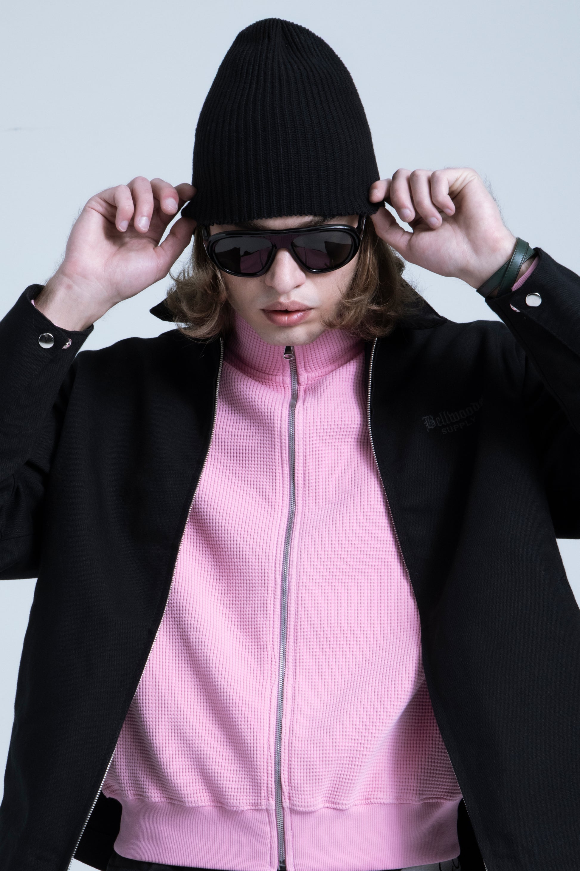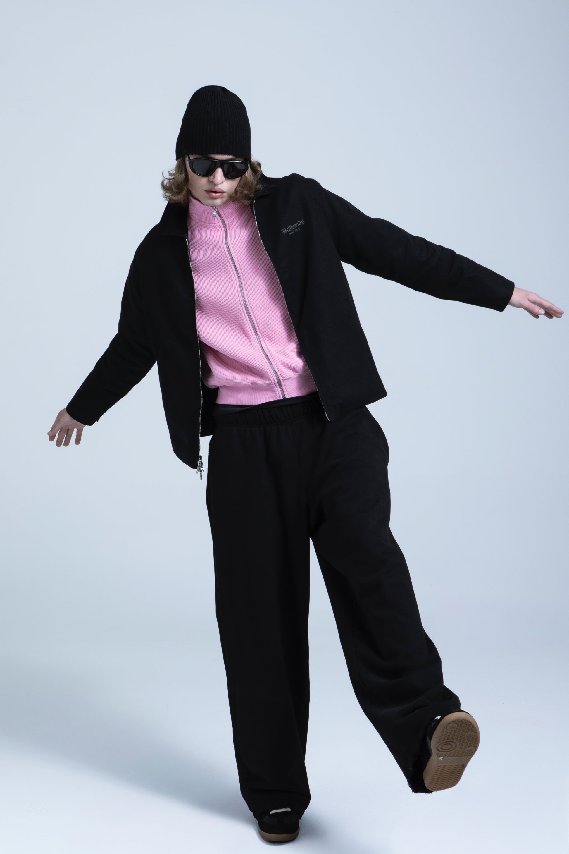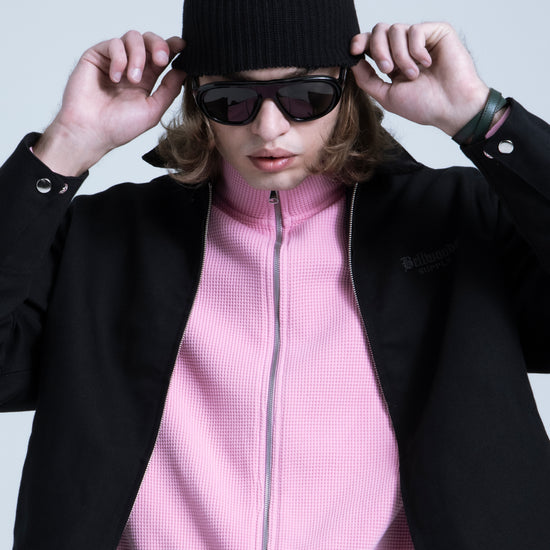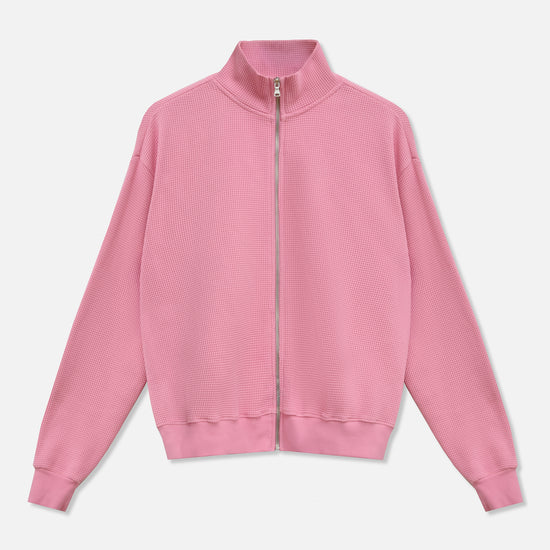 Waffle Zip Up Track Jacket - Bubble Gum Pink