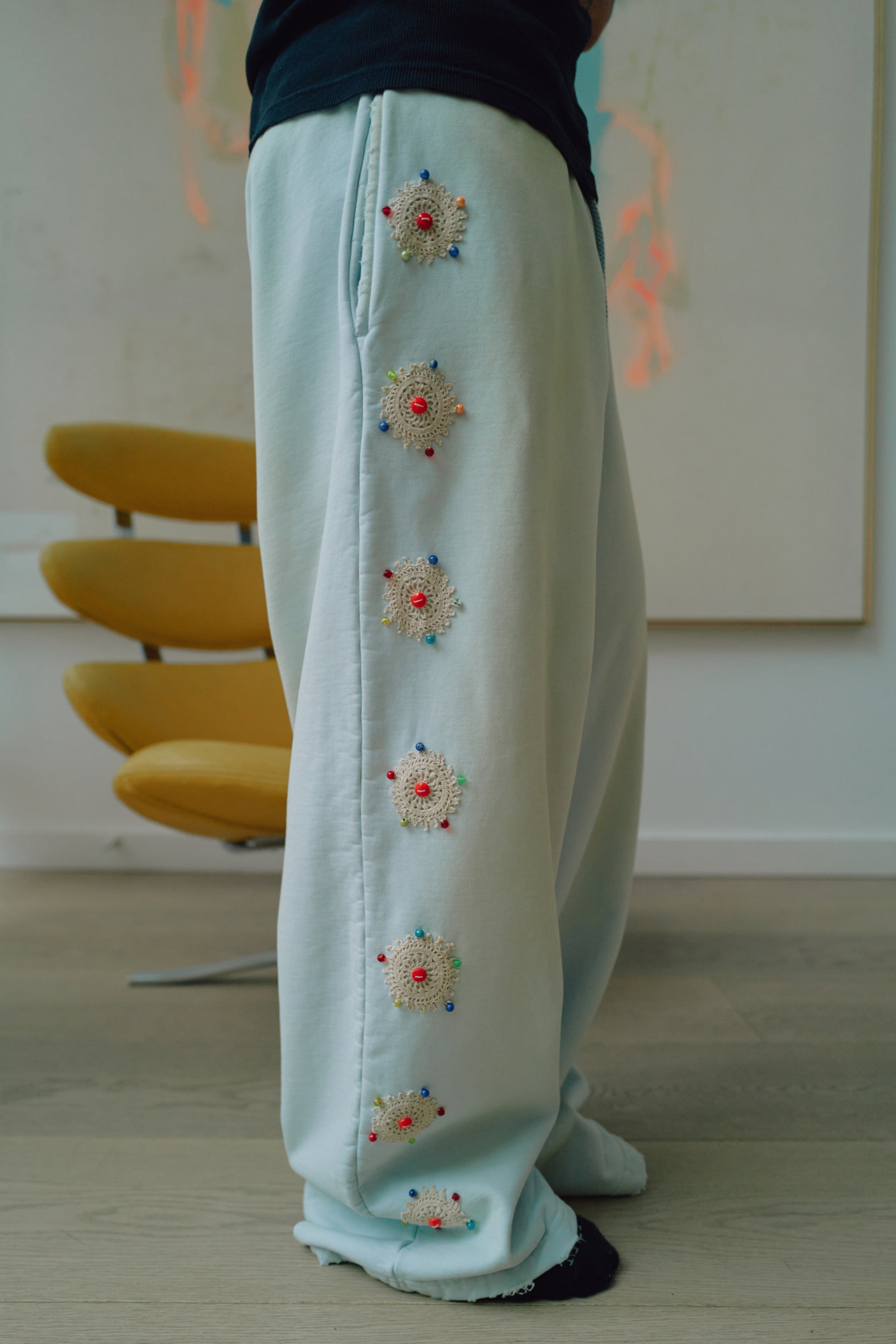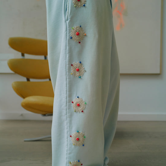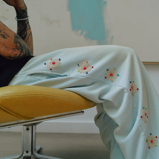 In collaboration with Brendra Bent, we created one-of-one custom Wumbos. Our best-selling silhouettes reimagined by hand. Each pair features authentic 1930s Eastern European glass beads, paired with delicate lacework and intricate piping for a truly archival, elevated finish.