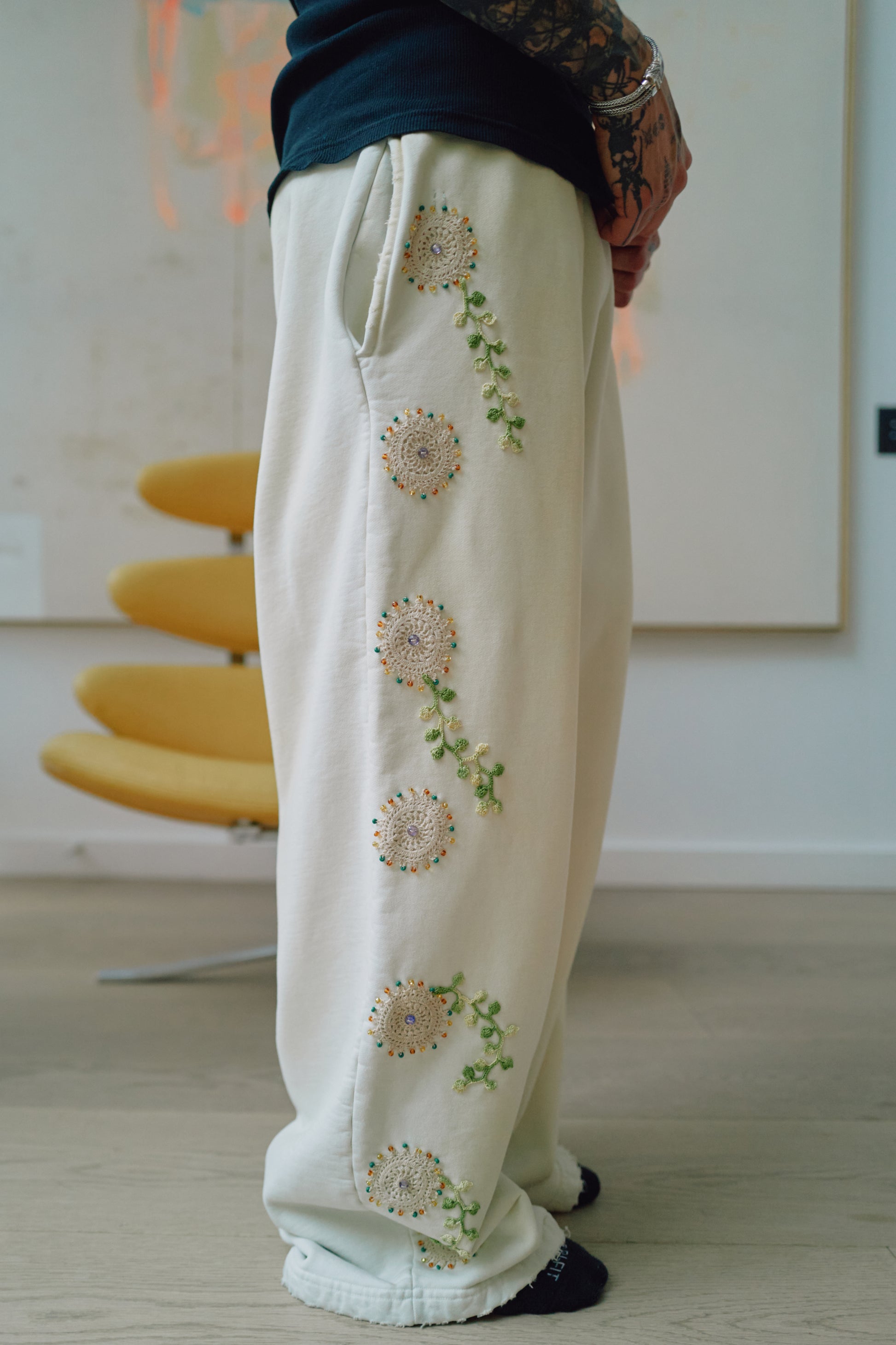 In collaboration with Brendra Bent, we created one-of-one custom Wumbos. Our best-selling silhouettes reimagined by hand. Each pair features authentic 1930s Eastern European glass beads, paired with delicate lacework and intricate piping for a truly archival, elevated finish.