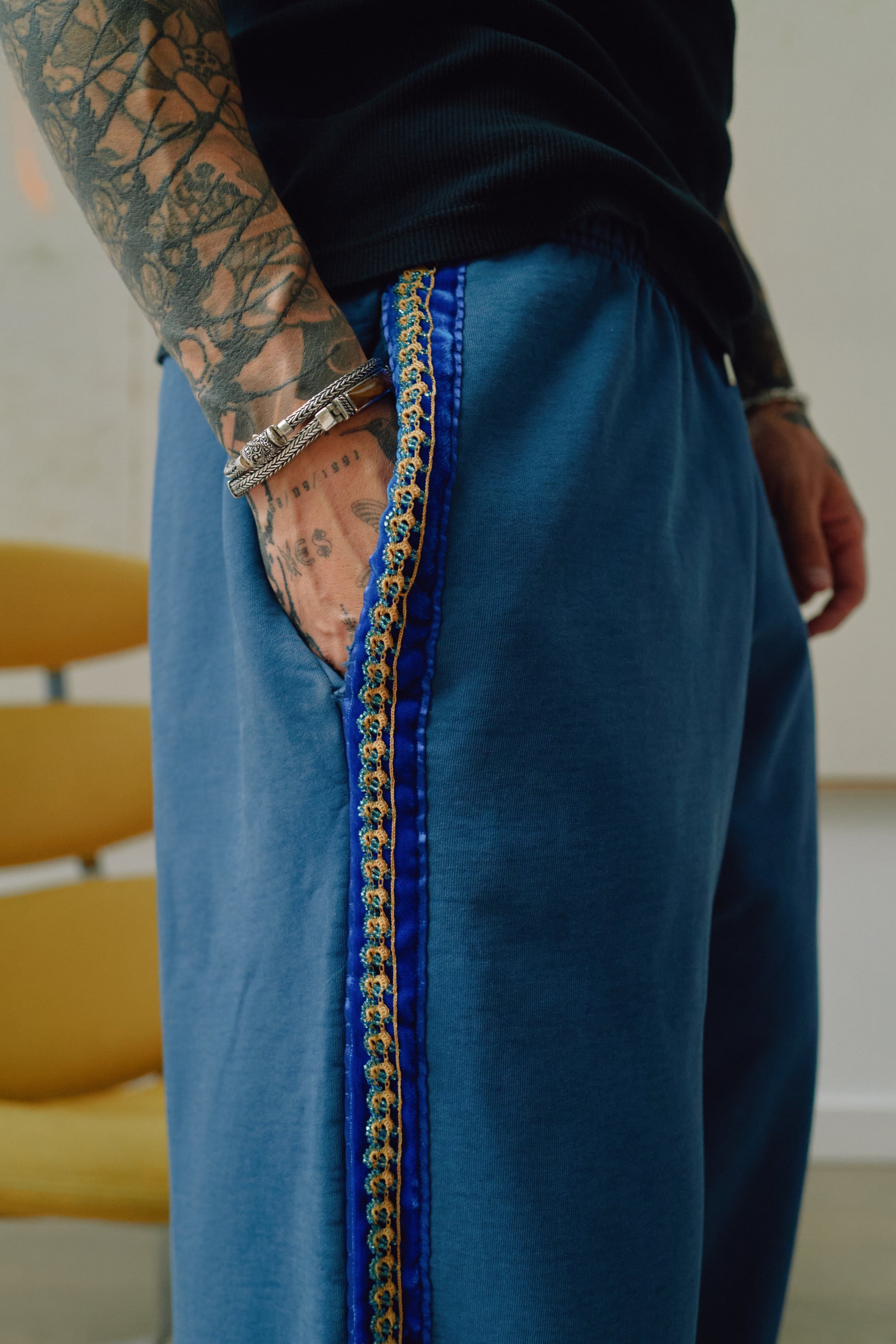 In collaboration with Brendra Bent, we created one-of-one custom Wumbos. Our best-selling silhouettes reimagined by hand. Each pair features authentic 1930s Eastern European glass beads, paired with delicate lacework and intricate piping for a truly archival, elevated finish.